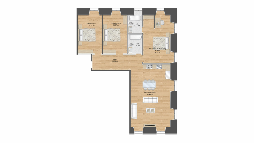 4,5 pièces entièrement rénové